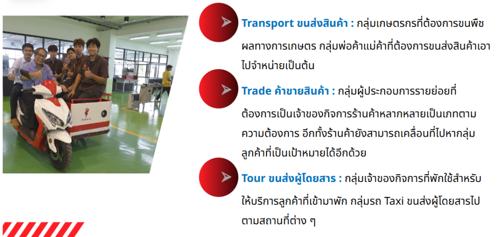 ได้วิจัยและพัฒนารถจักรยานยนต์ไฟฟ้าพ่วงข้างให้ได้มาตรฐาน